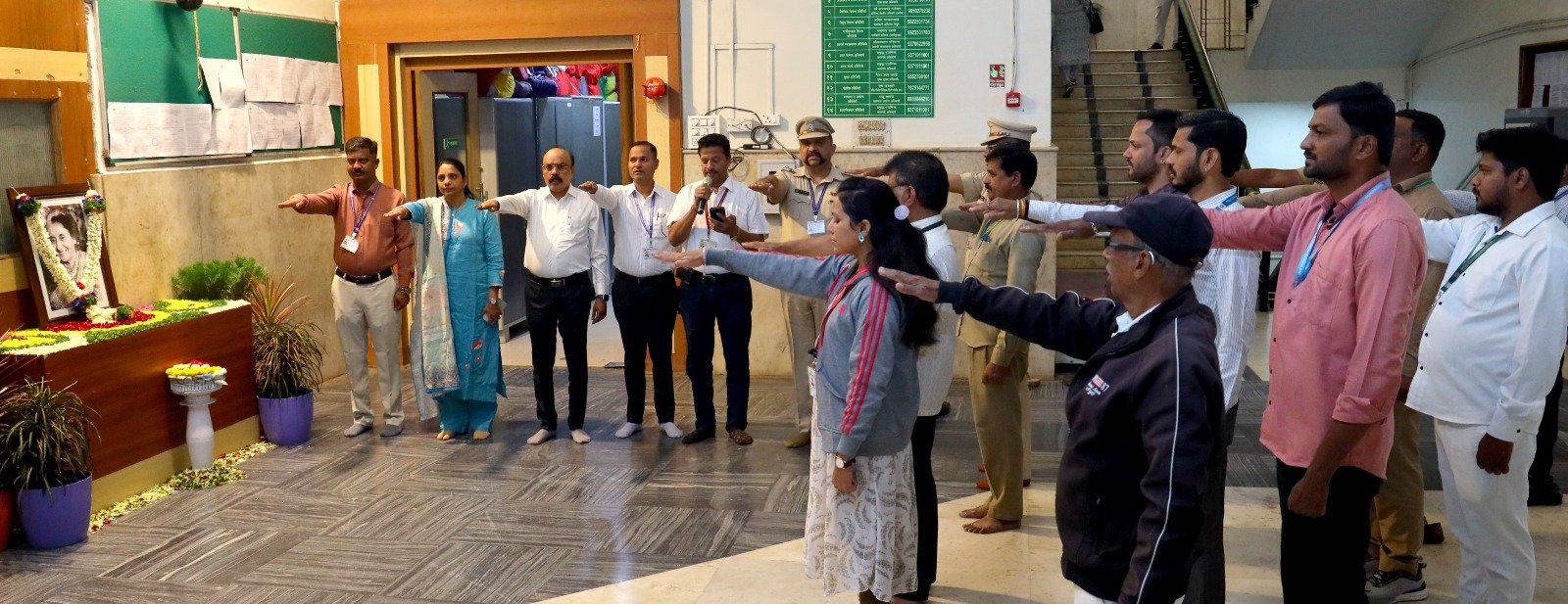यावेळी उपस्थित अधिकारी व कर्मचाऱ्यांनी राष्ट्रीय एकात्मतेची सामूहिक शपथ घेतली. “देशाचे स्वातंत्र्य आणि राष्ट्रीय ऐक्य कायम राखण्यासाठी आम्ही प्रामाणिकपणे कार्य करू. कोणत्याही परिस्थितीत हिंसाचाराचा अवलंब करणार नाही आणि धार्मिक, भाषिक, प्रादेशिक मतभेद तसेच इतर राजकीय–आर्थिक तक्रारी शांततामय आणि संविधानानुसार मार्गाने सोडवण्याचा प्रयत्न करू,” असा संकल्प सर्वांनी व्यक्त केला. या शपथविधीचे नेतृत्व अतिरिक्त आयुक्त तृप्ती सांडभोर यांनी केले.