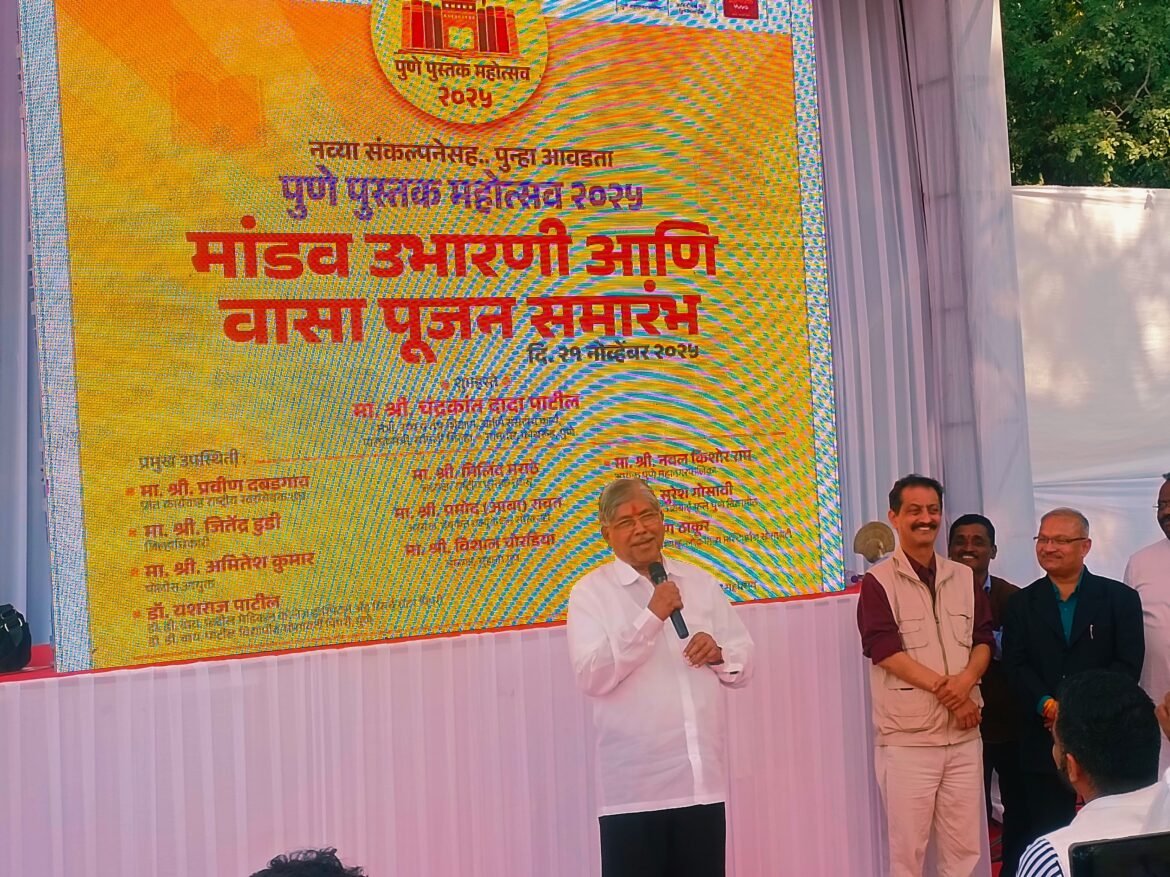 पुणे पुस्तक महोत्सव २०२५ च्या मांडव उभारणी आणि वास्तुपूजन समारंभात ते बोलत होते.