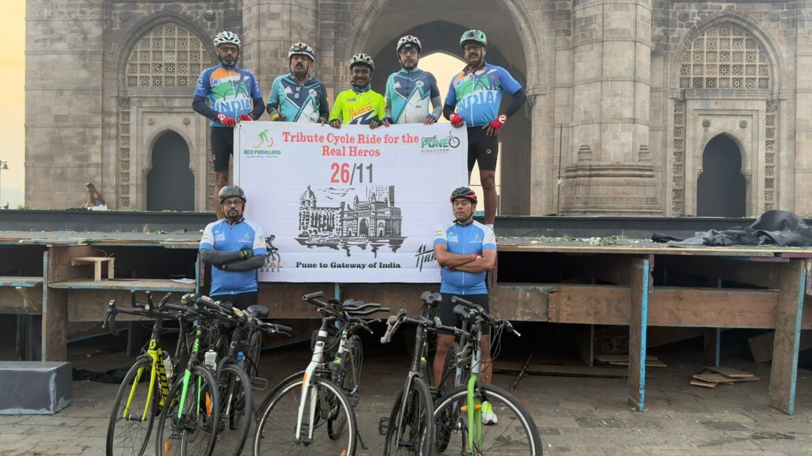 प्रतिनिधी :पिंपरी चिंचवडच्या ‘इको पेडलर ’ सायकल वीरांनी 26/11 शहीदांना अभिवादन करण्यासाठी एक अनोखी आणि प्रेरणादायी सायकल मोहीम पार पाडली. पंढरपूर, गोवा अशा कठीण मोहिमा यशस्वीपणे पूर्ण केलेल्या या ग्रुपने आपल्या चौथ्या वर्षी देशभक्तीचा सुंदर संदेश देणारा( Eco Pedalers-150km)उपक्रम राबवला.