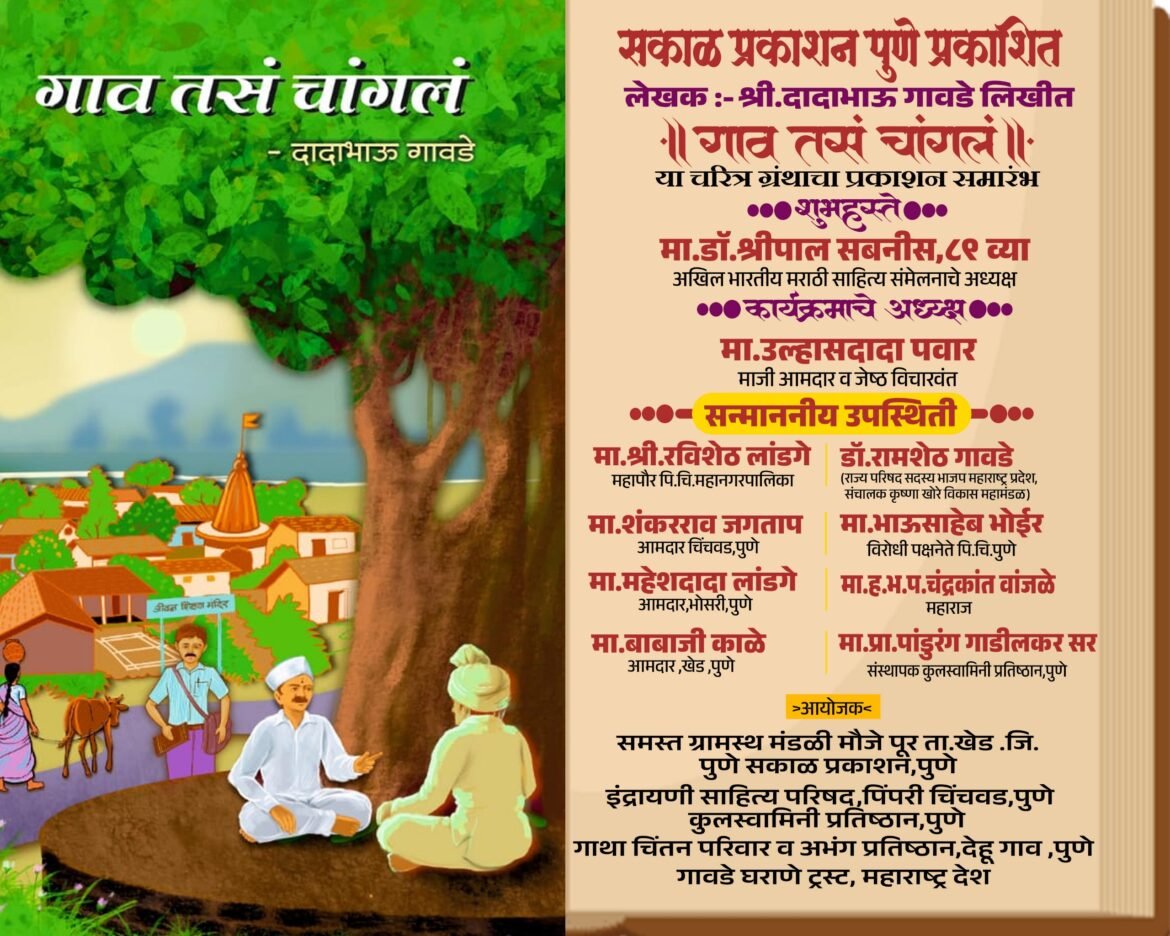 पुणे : ग्रामीण जीवन, संस्कृती आणि माणुसकीच्या नात्यांचा वेध घेणाऱ्या ‘गाव तसं चांगलं’ या चरित्रग्रंथाचा प्रकाशन सोहळा लवकरच पुण्यात उत्साहात पार पडणार आहे. ज्येष्ठ लेखक दादाभाऊ गावडे लिखित या ग्रंथाच्या प्रकाशनाची तयारी अंतिम टप्प्यात आली असून साहित्यप्रेमींमध्ये या कार्यक्रमाबद्दल उत्सुकता निर्माण झाली (Gaav Tas Changla book)आहे.